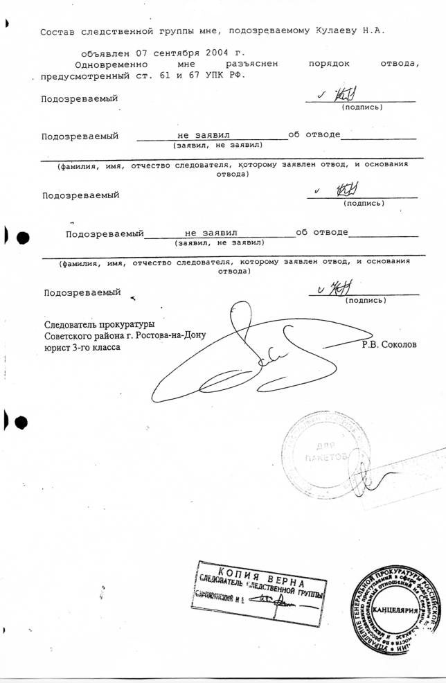 Основные документы о возбуждении уголовного дела по факту захвата заложников в СОШ № 1 г.Беслана и о проведении предварительного следствия.